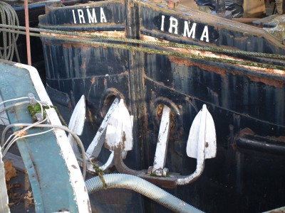 Du coup, dans la base de données Belgische Binnenvaart Schepen, on trouve un IRMA qui pourrait correspondre : construit en 1902 aux chantiers Jabon d'Ombret, propriétaire F. Meskens, port d'attache Anvers. Et si on regarde bien la photo du cul du bateau prise par Kikipuce, on voit que l'inscription "ANVERS" a été grattée mais est encore lisible. Et puis il y a les grands tonnages : 324 tonnes sur la photo, 326 tonnes dans la base de données, c'est vraiment très proche.