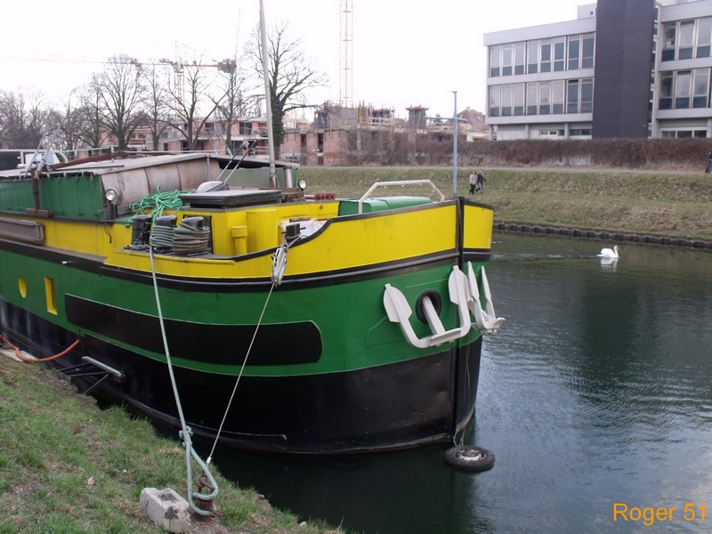 (renfort ? défense ?) à l'arrière, et les tôles peintes en noir à l'arrière aussi qui sont bien courbées jusqu'à quelques cm au-dessus de l'eau, comme sur les bateaux au cul "boule" (?)