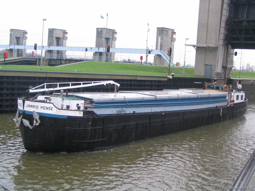 Jamais Pense , 38,87 x 5,10 x 2,41 , 328 ton , Bouwjaar 1957 , Werf Chantier Naval in Rupelmonde ( Belgie ) , 141 pk Stork , ex ? , eigenaar K. Meester in Rotterdam , ENI 02309865