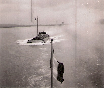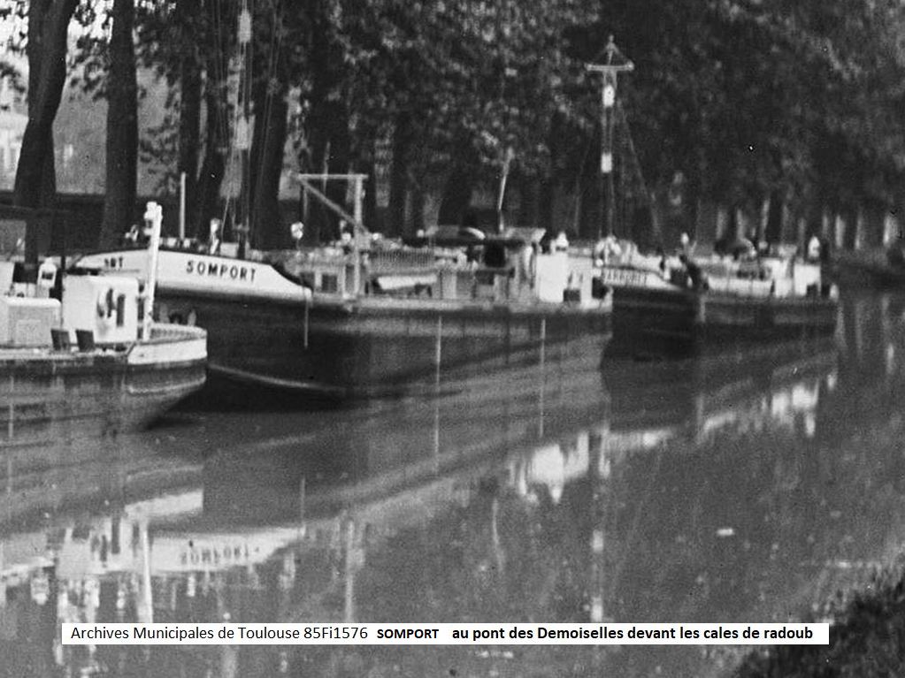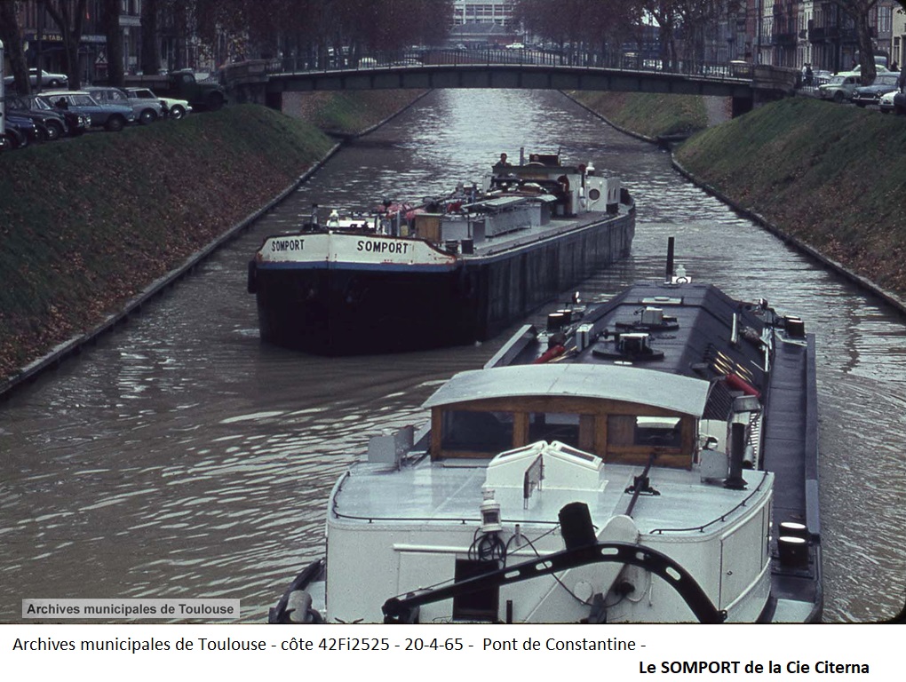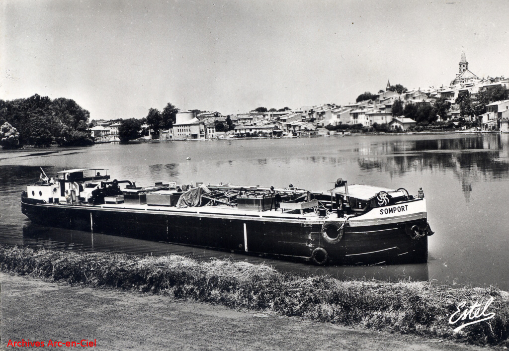 Photo archives familiales JC Chauveaux, avec son autorisation. Le SOMPORT, bateau du Midi, remorqué par le CITERNA 4, dont on ne voit que le pavillon national. La vue daterait des années 40, près de Port-de-Bouc.
