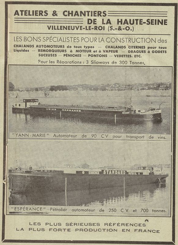 A Vileneuve le Roi, se trouvait les Chantier et Atelier de la Haute-Seine ACHS..