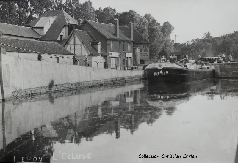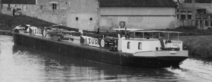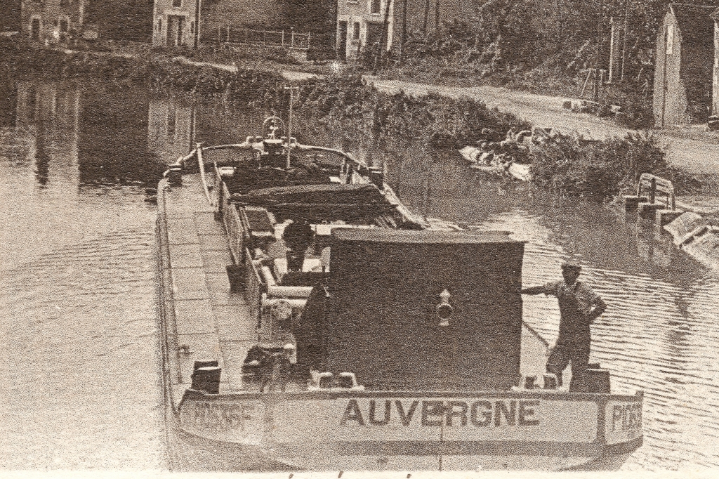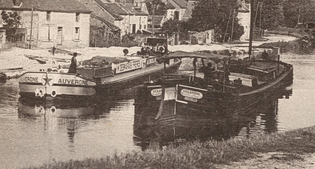 Sur cette photo, il croise la péniche EGLANTINE, immatriculée à Nevers (matricule NV XXX F).