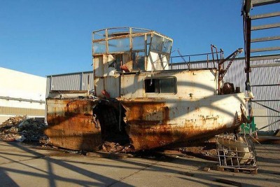 Décembre 2014 ; Source ouest-france ; La péniche Kid a quitté le quai n° 4 de la réparation navale pour son ultime voyage. Dernièrement, elle a fait quelques mètres pour rejoindre le chantier Guyot Environnement. Agréée pour démolir les bateaux, la société a commencé la déconstruction de la péniche, la semaine dernière.