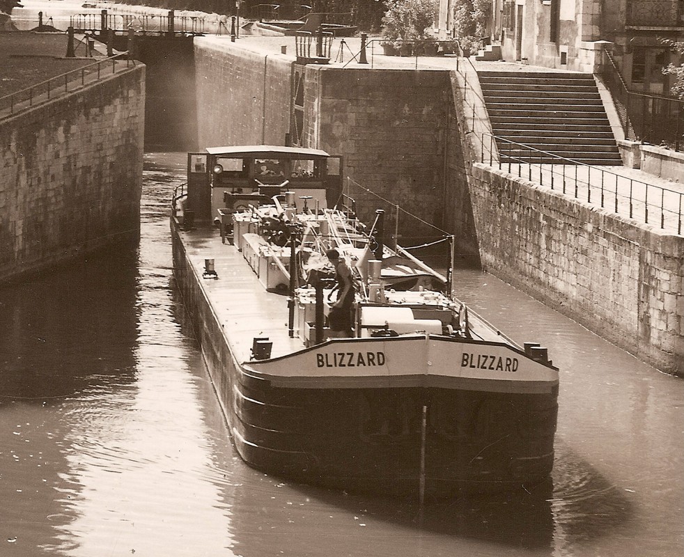 Sur cette photo avec 4 bateaux pris des glaces (ça doit être sur la Marne), le BLIZZARD est au large :