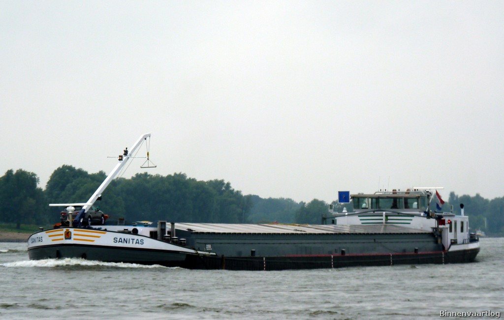 Sanitas , 85,00 x 11,05 x 3,22 , 2011 ton , Bouwjaar 1958 , Werf Jos Boel & Zn in Temse ( Belgie ) , 2 x 720 pk MTU en 320 pk DAF boegschroef , ex Kongo , ex Vagari , eigenaar C. van Lingen in Ridderkerk , ENI 02317635