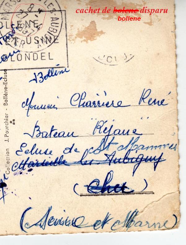 la cp.a ete postée le 25.04.1957 et renvoyée de marseilles les aubigny le 27.04.1957 a 8 heures ( deux cachets de la poste )