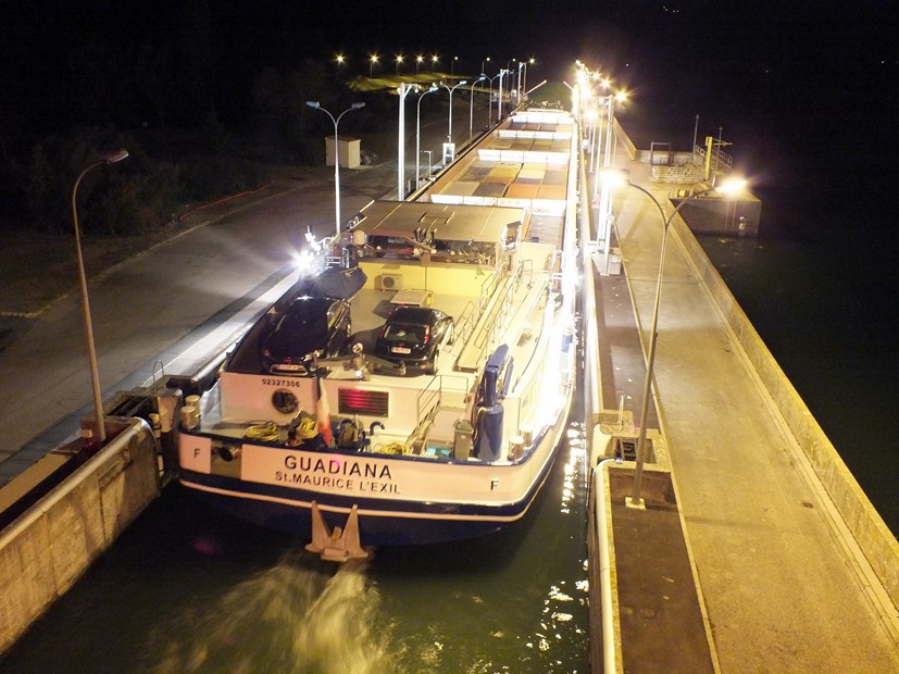 Hier, au large de l'île Saint-Pierre (PK 305), j'ai eu la chance de voir ce "géant" du Rhône, à la jumelle, remontant ses 108 boites. Du coup, j'ai pris connaissance en détail, de son histoire, de ses propriétaires et de ses caractéristiques.