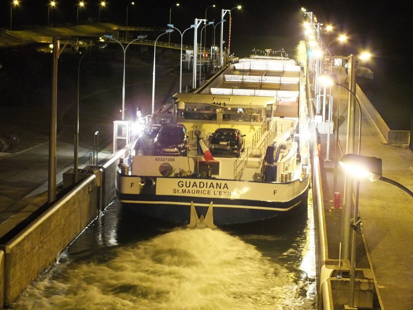 Vu ce jour avalant au pk 30. Trois hauteurs de "boites" et une bonne conversation avec Kévin. Cela fait du bien de parler un peu bateaux /écluses. ...Dommage que la navigation commerciale soit calme mais cela avantage la plaisance pour le passage aux écluses.