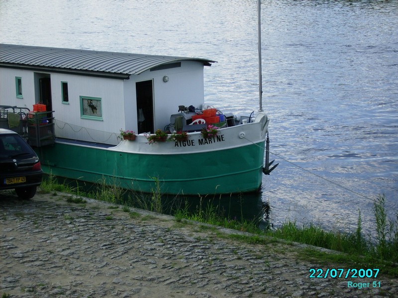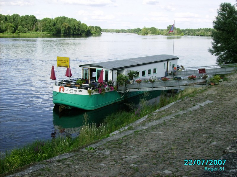 Ce bateau est toujours à la même place (juillet 2016) en rive gauche à moins d'un km après le village de Candes St Martin. Mais bien sûr, sur Montsoreau.