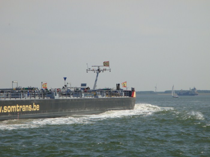 On avait la bonne marrée avec nous, avec notre bacs chargé qui était plein bacs on fesait 11km/h en sortant de Terneuzen pour atteindre les 19,5km/h avec presque 3000tonnes.