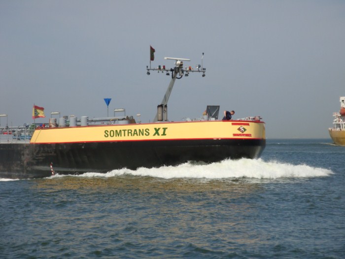 On avait la bonne marrée avec nous, avec notre bacs chargé qui était plein bacs on fesait 11km/h en sortant de Terneuzen pour atteindre les 19,5km/h avec presque 3000tonnes.