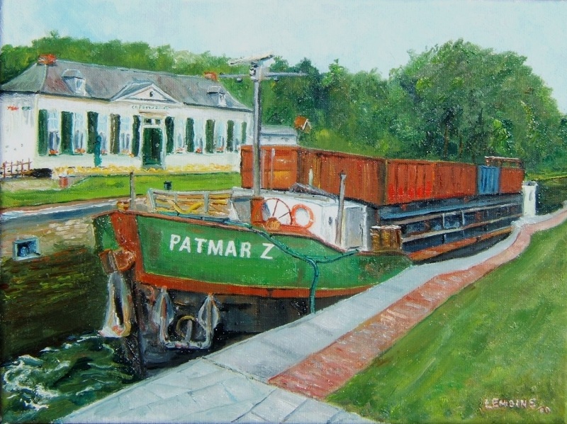 PS: Eddy, le patron du Café Maritime a vu ma toile de l'écluse de Tildonk avec l'Ibiza et son auberge. Il m'a demandé de l'encadrer. Mon épouse et moi-même lui avons apporté sa toile encadrée et vernie et après un bon repas, oh surprise, aux frais du sympathique tenancier, il me l'a achetée.