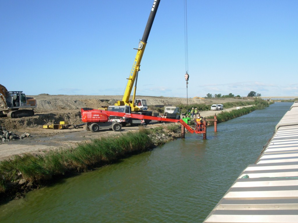 l'élargissement se fait par les berges coté mer,les berges coté des étangs sont préservées afin de ne pas déstabiliser l'écosysteme naturel,durée des travaux prévu et de 28 mois ,l'élargissement de 6 a 16m ,le réhaussement des ponts de 20 a 80 cm,des zones de croisements,seront également aménagées,notament aux aresquiers et au triangle de carnon,la zone de croisement de maguelone sera,elle,améliorée.