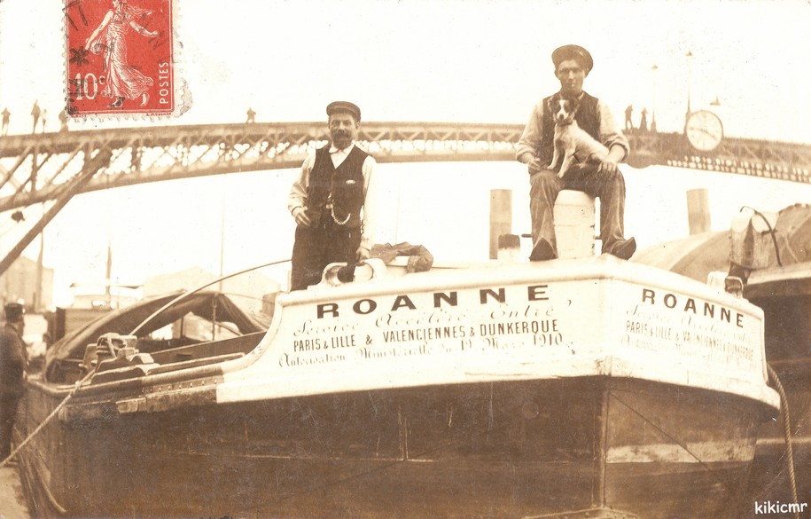 - et une carte photo facilement datable : elle a été écrite en février 1911, et sur les fargues, on peut lire que le ROANNE dispose d'une autorisation ministérielle de service accéléré entre Paris, Lille, Valenciennes et Dunkerque, délivrée le 19 mars 1910 :