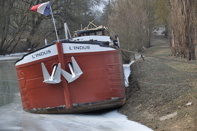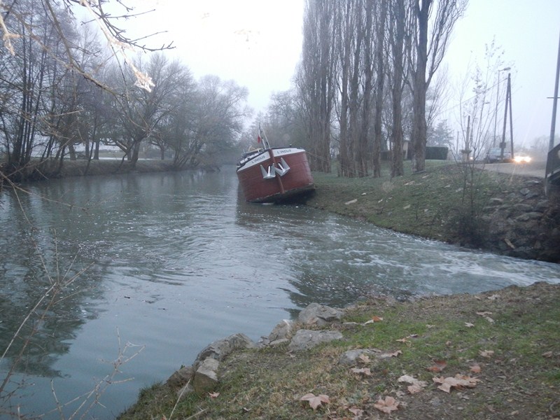 Le 27 janvier, la Saône ayant remonté un peu il n'aurait pas fallu beaucoup pour le remettre à flot, alors je suis allé voir les agents de VNF pour leur demander s'ils savaient dans quelle posture était L'INDUS, il m'a été répondu que VNF n'était pas concerné la Chalaronne n'étant pas de leur ressort.