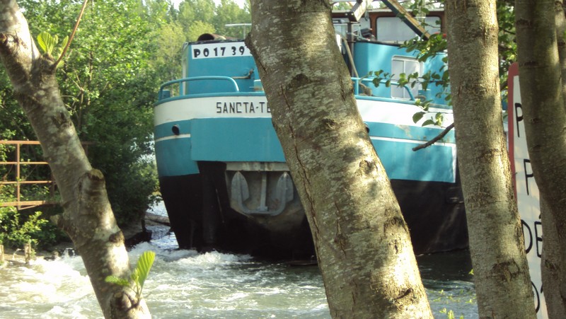 Nous allons sortir de l'écluse pour nous rendre à la prochaine, l'écluse de Vinneuf, mais dans le bief de canal, nous allons croiser un "Voisin"