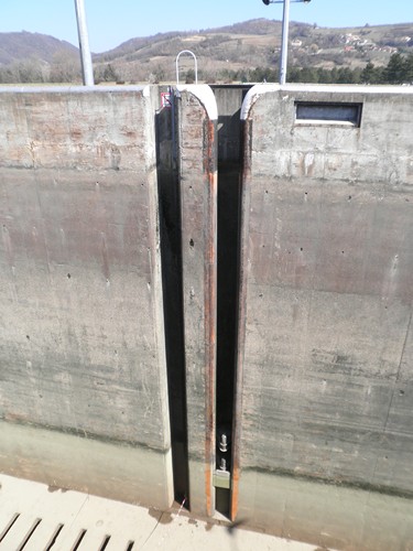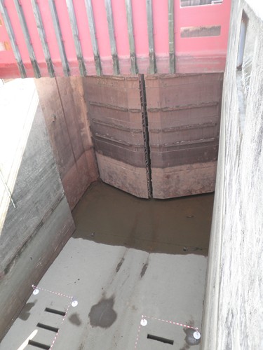 - ...les batardeaux ferment l'entrée amont.L'une des portes est dans son logement à l'avant du seuil en béton...