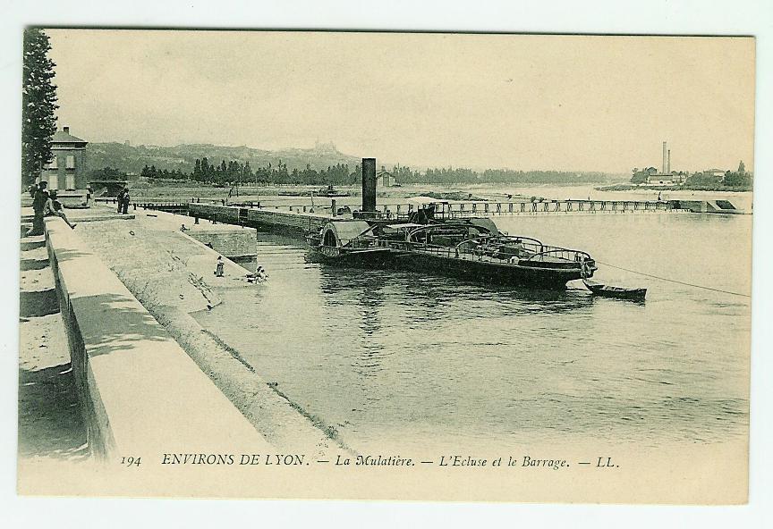 Carte postale du PELVOUX, longeant l'île de La Barthelasse, avec les symboles d'Avignon : le Pont, le Palais des Papes et Notre-Dame-des-Doms, envoyée l'avant-veille de Noël 1908.