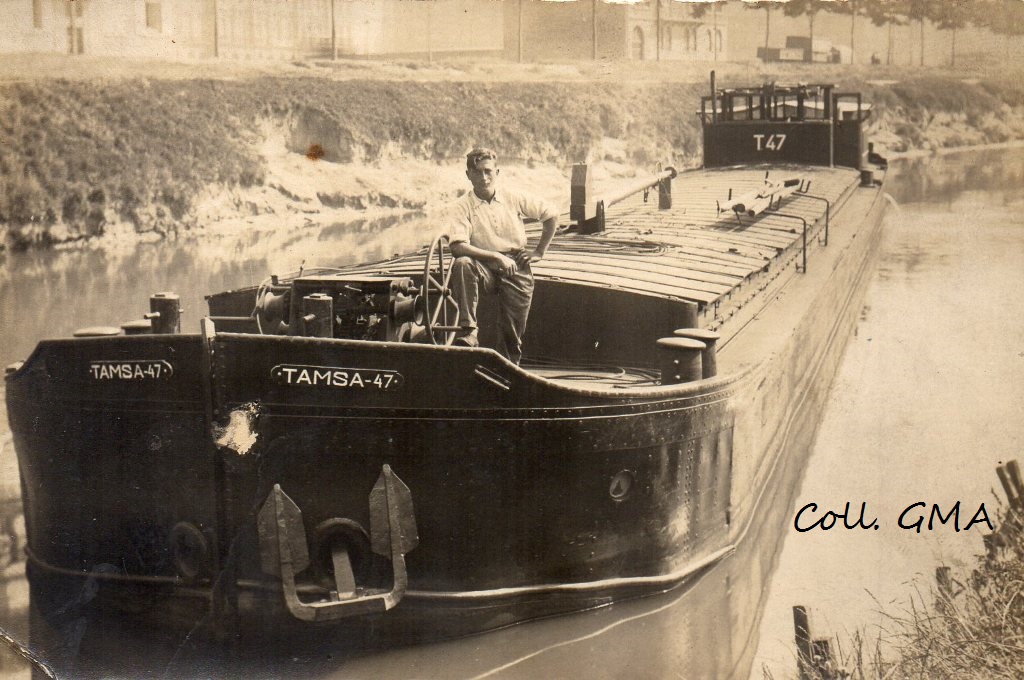 C'est marrant quand même, le hasard... je vous explique : au moment où je pose la question ici, il se trouve qu'une discussion se développait dans le groupe Facebook Voies navigables du Nord-Est au sujet d'un autre Tamsa, et pour ainsi dire quelques minutes après que j'aie posé la question ici, Gérard P., spécialiste en Tamsa, évoque l'ancre à jas dont étaient équipés ces bateaux pour faire le Rhin, avant sa canalisation. C'est là que ça a fait tilt dans ma tête : les morceaux de tube sur les fargues, l'ancre à jas... l'ancre à jas, les morceaux de tube sur les fargues... il devait y avoir un lien ! Et bien oui, Gérard P. a confirmé, ces pièces fixées sur les fargues servaient bien à maintenir l'ancre à jas : un câble ou une petite chaîne était fixée dessus, reliée à la pointe de la grue servant a suspendre l'ancre à jas dont étaient équipés les "Tamsa" à leur sortie de chantier.