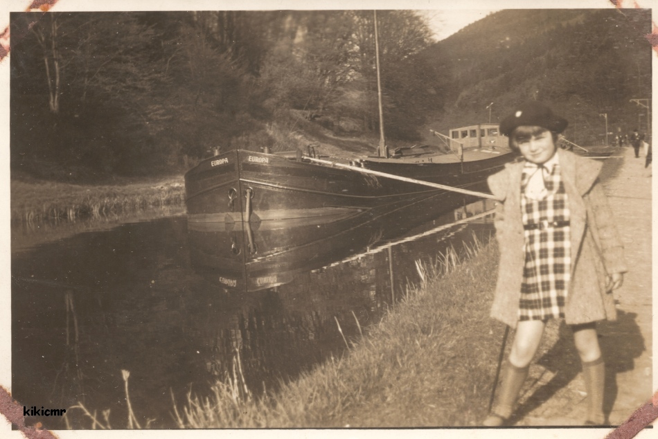 Je ne sais pas grand chose sur cette photo : ça doit être dans la vallée de Saverne (versant Rhin du canal de la Marne au Rhin), dans les années 30... Seule certitude : le bateau s'appelle EUROPA