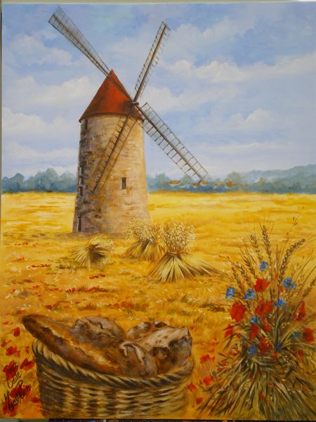 Nous sommes dans une region de grand vent (nord ou sud) en ces temps présents, voici donc une peinture d'une moulin à vent.