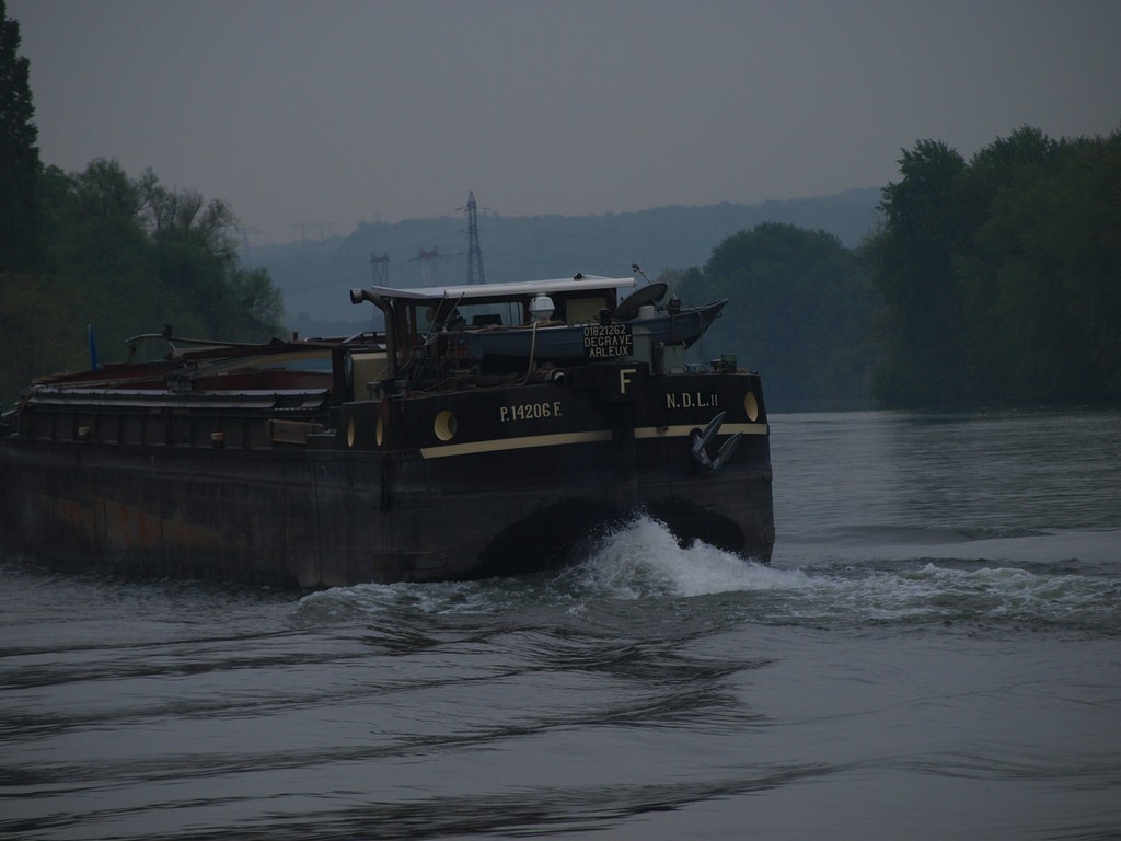 Chargement, pourquoi: Pelle sur ponton et le godet est un "rétro". Pour le déchargement, la pelle se trouve sur la berge et elle a une "benne preneuse" (elle se ferme comme deux mains qui prennent).