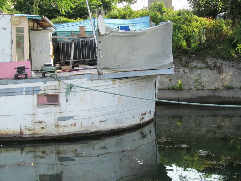 Je suis désolé de vous présenter ce qui reste de ce bateau stationné à l'aval du canal St- denis en rive droite.