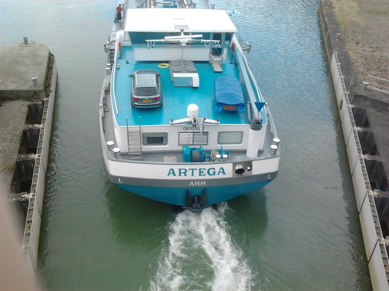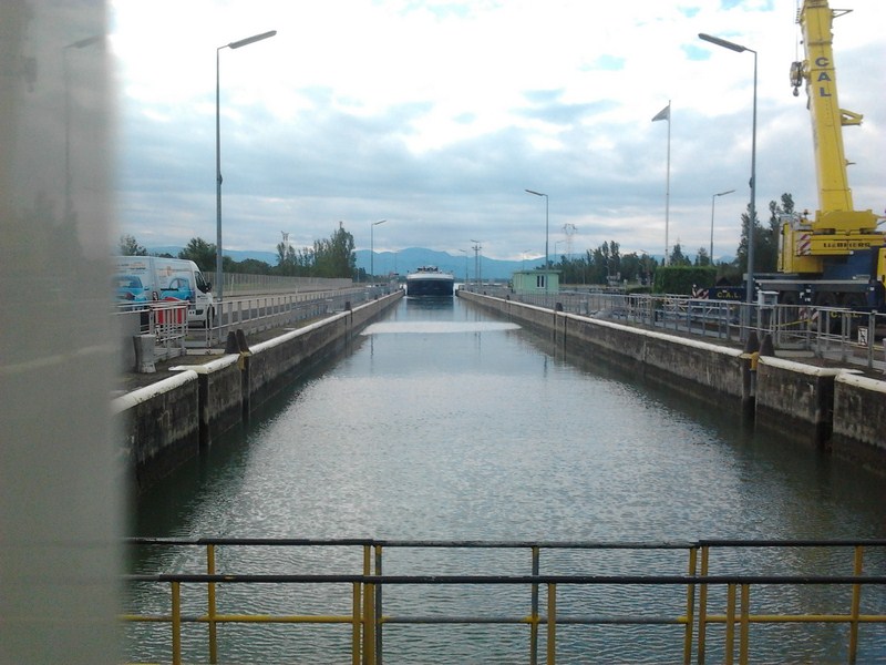 petite promenade a l'écluse de volgelgrun et par chance un bateau rentre dans le petit sas le grant étant a l'arrêt pour maintenance il a les même problème que les 38 m en canal de plus il y a un méchant vent de travers, il doit y avoir aux max 8 a 10 centimètre de chaque côté.