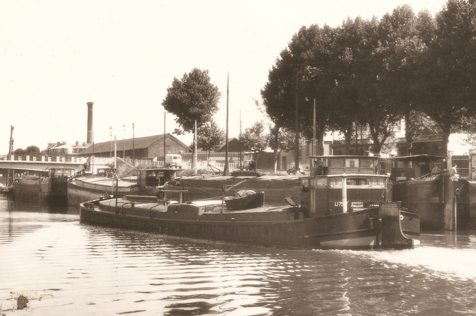 ...on voit pas mal de bateaux. Et celui qu'on voit le mieux, le seul en navigation, je me demande bien si ça ne serait pas un de ces bateaux du chantier qui est particulièrement apprécié du côté de Montereau et Pont-sur-Yonne :