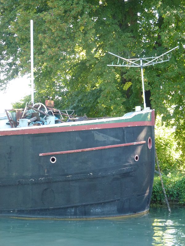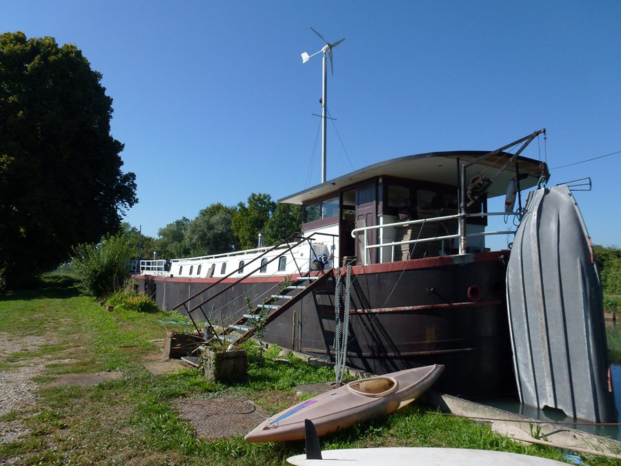 Un bateau-logement amarré sur le canal du Rhône au Rhin, à Obenheim (67) :