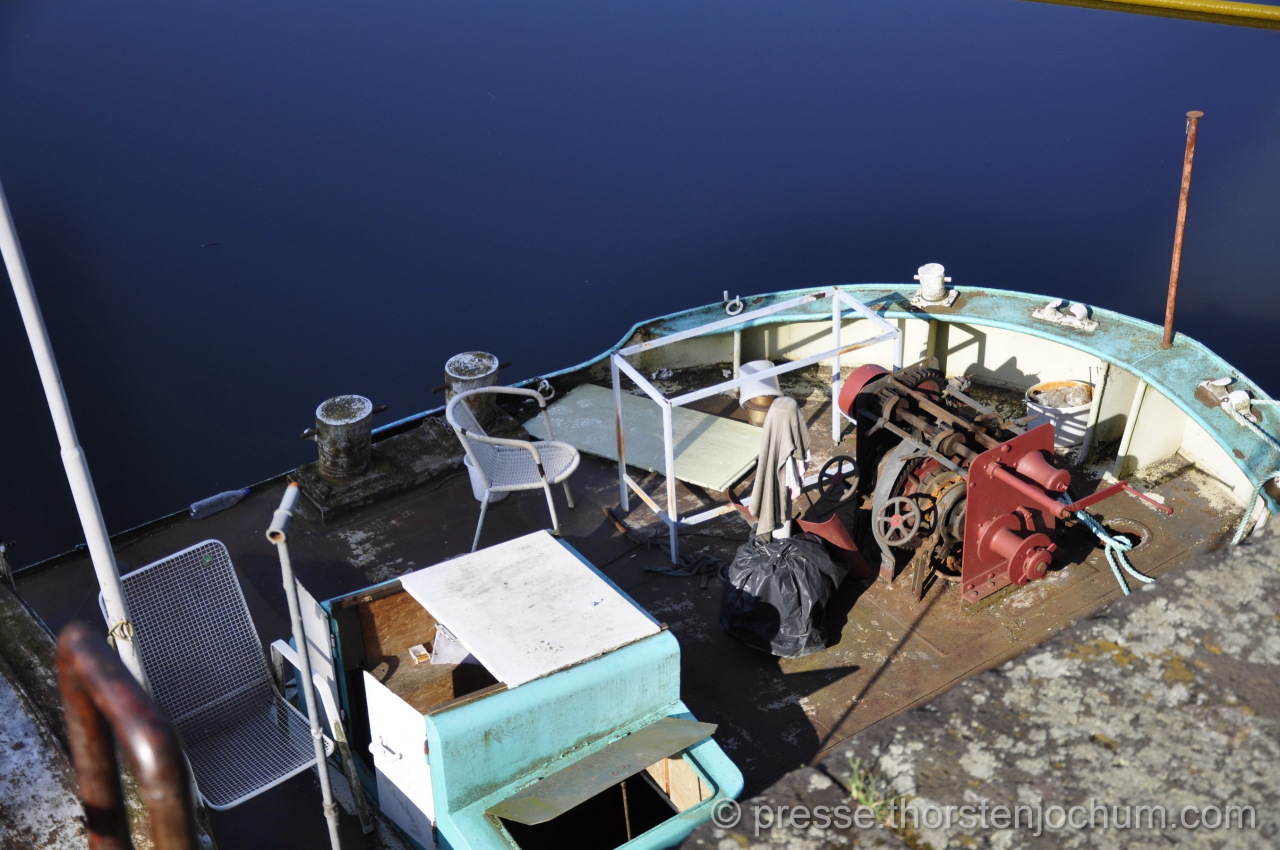 Ah - je me suis trompé concernant le chantier... (peut-être à cause de la toilette :oops: ) .Je mets les deux photos ici parce que je ne sais pas la devise du bateau, pris à Saarbrücken dans le port de l`est (Osthafen) en décembre 2010. Peut-être la toilette n`est pas original :shock: :mrgreen: