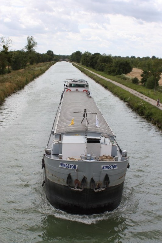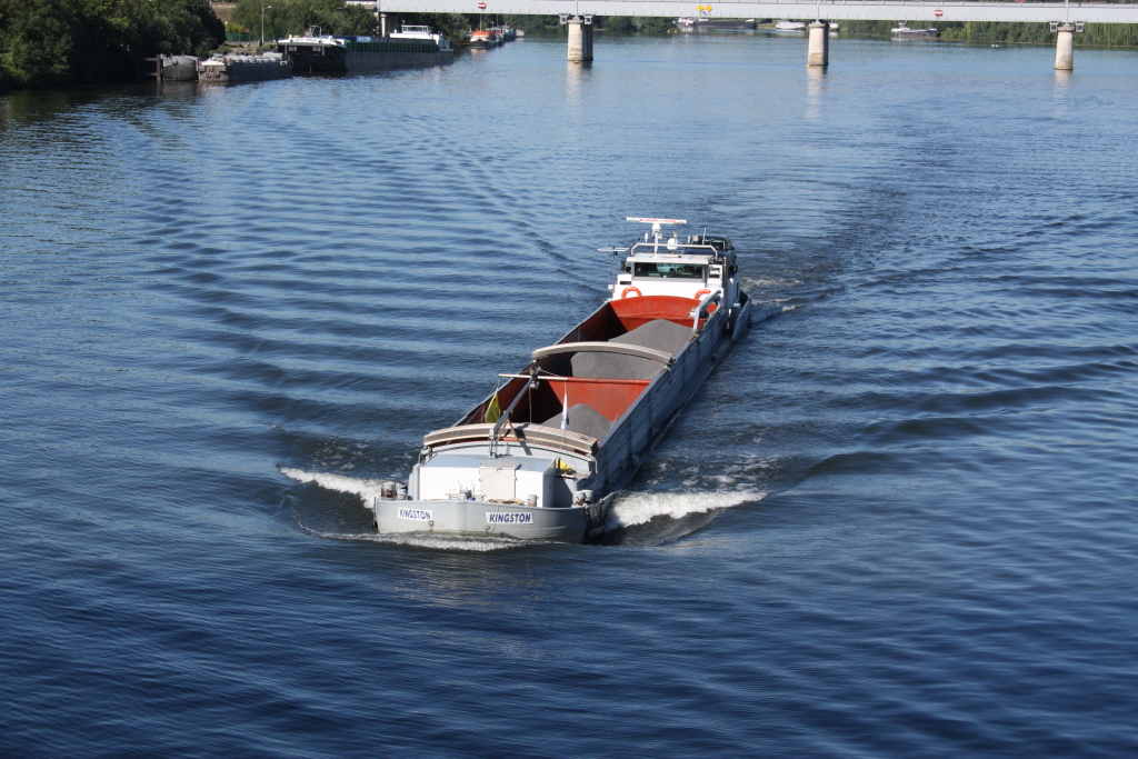 - Kingston montant vide au pont de Villiers juillet 2009 (l'oeil observateur remarquera le p'tit mat'lot qui suit sur le halage à vélo!)