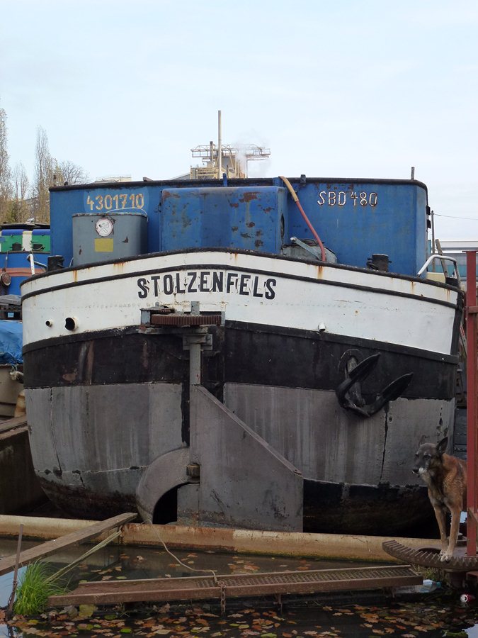 Un bateau fier, oui, mais il y avait aussi de la tristesse avec le STOLZENFELS. L`ancien propriétaire tombait dans l`eau en hiver et se noya – c`était au nord le la France, je ne sais pas le lieu exacte.