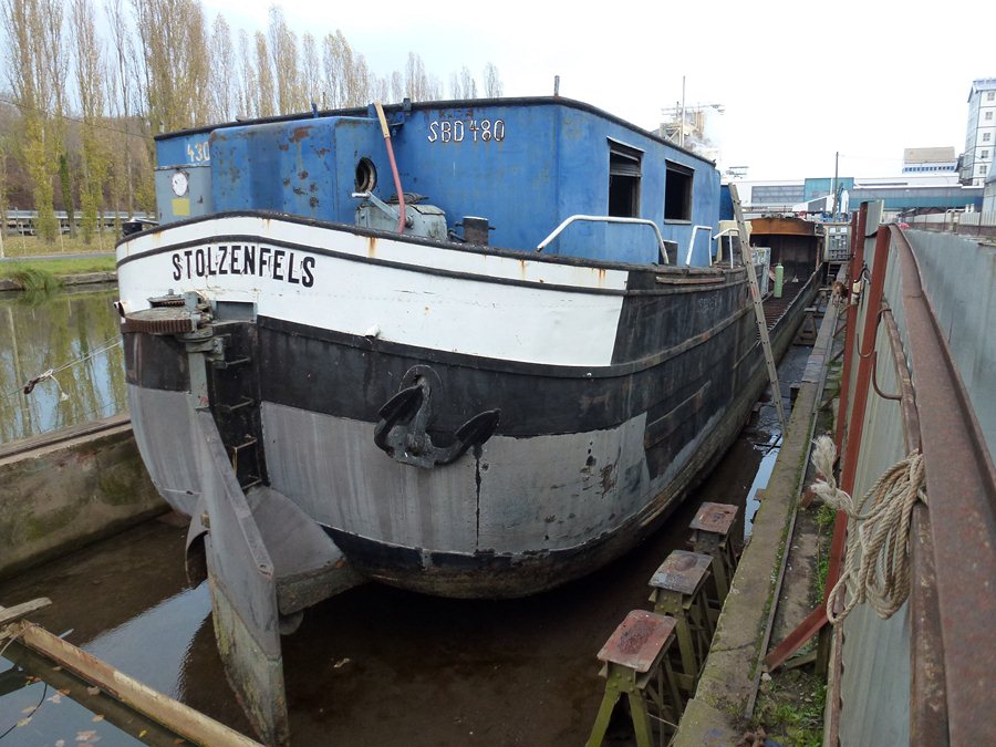 Un bateau fier, oui, mais il y avait aussi de la tristesse avec le STOLZENFELS. L`ancien propriétaire tombait dans l`eau en hiver et se noya – c`était au nord le la France, je ne sais pas le lieu exacte.