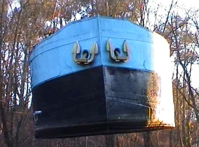 - redécoupé en deux parties, à nouveau posées sur des porte-chars :