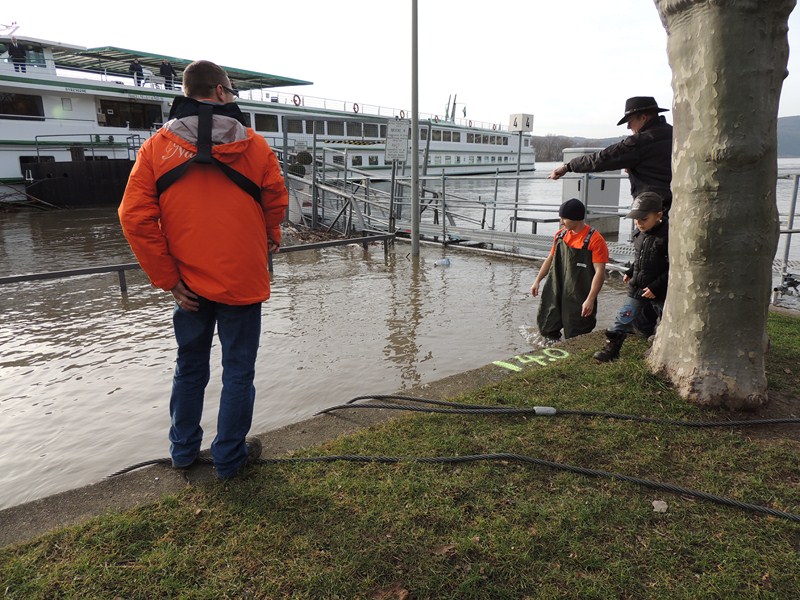 l'amarrage fut délicat car les bolards etaient immerger, c'est donc les pied dans l'eau que le matelot à mis les cables d'amarrage.