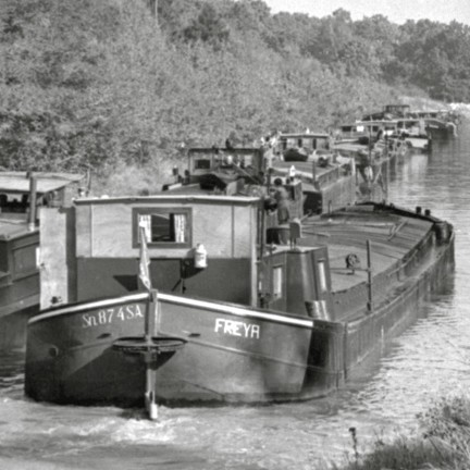 FREYA à la voûte du canal de Saint-Quentin, le 10 juillet (il faisait partie d'une rame de 16 bateaux !), vu de l'avant ça ressemble fort à la photo ancienne de Sarrebruck aussi :