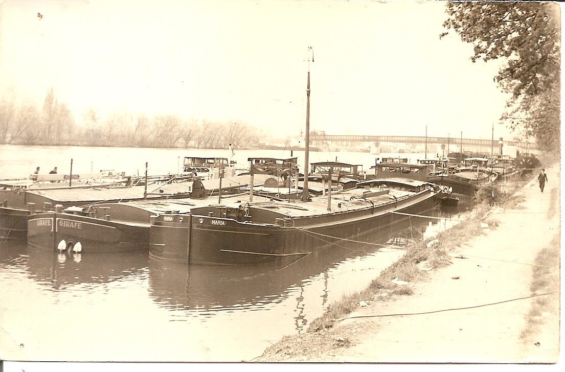 Encore une photo de ce bateau, c'est une magnifique CPSM de Courchelettes, avec, en gros plan, une belle machine de la CGTVN, un Jeumont à bielles ancien modèle :