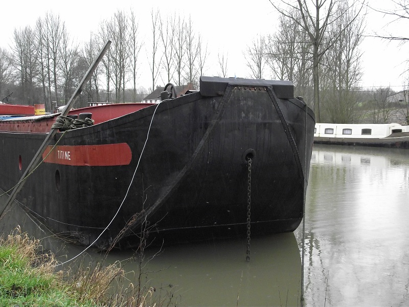 TITINE est une mignole ardennaise ou herna. Tout ce que j'ai appris, grâce à Alain Pascal, éclusier à La Plante- Namur, c'est qu'elle a été construite en 1930 et qu'elle a servi pendant 36 ans (1971-2007) comme clubhouse du cercle de voile de Dave sur la Meuse. Maintenant elle est amarré, comme logement, dans le bief 27 du canal désaffecté de Charleroi à Ronquières.
