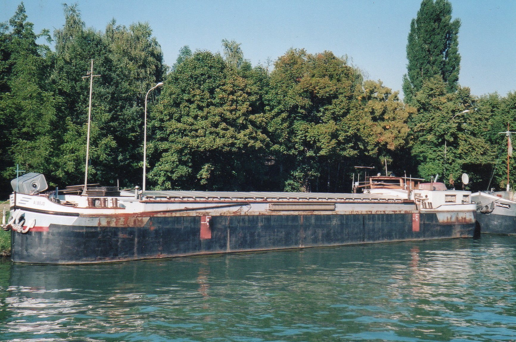 (renfort ? défense ?) à l'arrière, et les tôles peintes en noir à l'arrière aussi qui sont bien courbées jusqu'à quelques cm au-dessus de l'eau, comme sur les bateaux au cul "boule" (?)