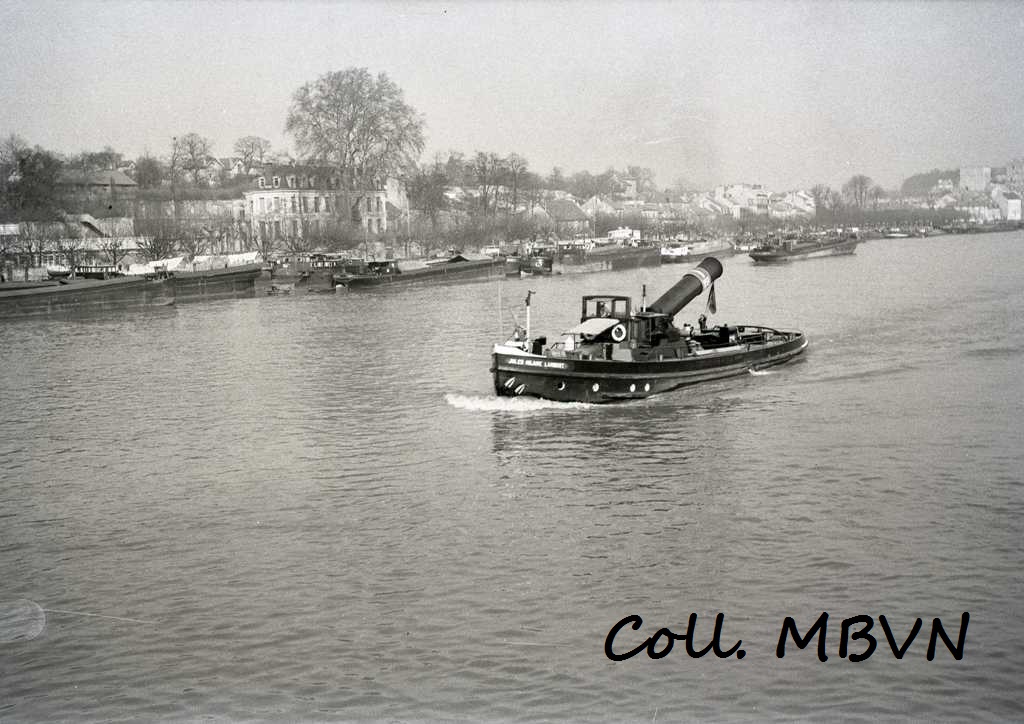 J'ai du mal à comprendre ce qu'on voit, sur cette photo : le DOUBS est tiré par le côté, c'est ça ? est-ce une mise à l'eau ? Le quai est en pente... Si on regarde les piles du pont, on voit des marques laissées par l'eau, ça veut peut-être dire qu'il y a eu une crue juste avant. Et au premier plan au sol, ça paraît bien mouillé, comme si l'eau venait juste de se retirer, n'est-ce pas ? Ne peut-on pas imaginer que le DOUBS s'est retrouvé en fâcheuse posture sur le quai lors d'une inondation, et que le LUCILINE est venu le tirer de là ? et c'est pour ça qu'il y a de nombreux badauds sur le pont et les quais...Sur la photo, le