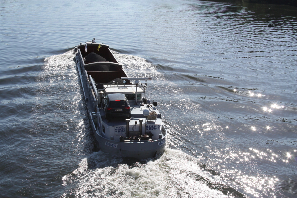 - Kingston montant vide au pont de Villiers juillet 2009 (l'oeil observateur remarquera le p'tit mat'lot qui suit sur le halage à vélo!)