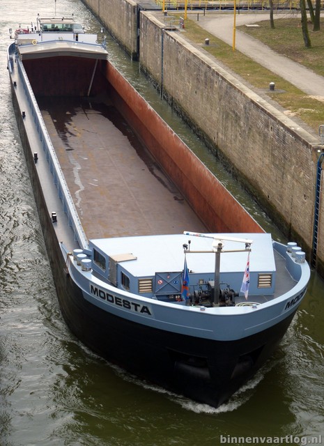 Modesta , 86,00 x 9,50 x 2,56 , 1665 ton , Bouwjaar 1926 , Werf van der Giessen in Krimpen a/d IJssel ( Nederland ) , 800 pk MWM , ex Ernst , ex Trio , ex Joline , ex Diadema , ex Modesta , eigenaar Vof. Gebr. Tor in Lemmer , ENI 02310707