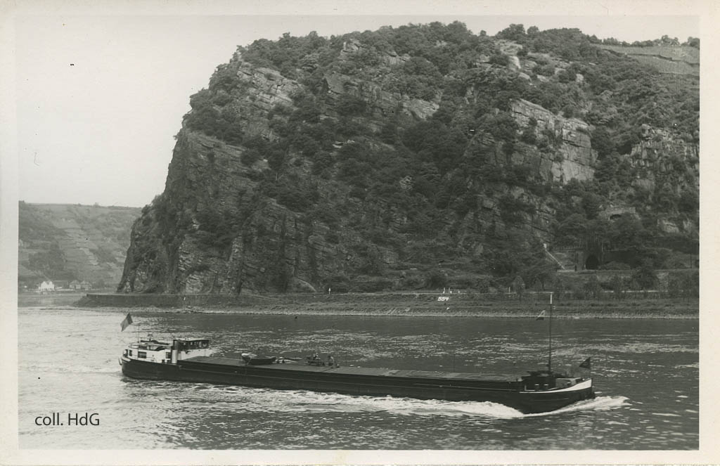 Qui connait ce bateau sous pavillon Belge au Rhin devant le Lorelei?