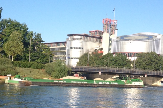 Le voici montant sur la traversée de l'ill,en arrière plan le palais des droits de l'homme.