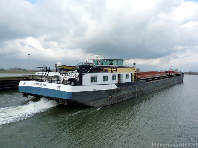 Tervant 154 , 85,00 x 11,42 x 3,37 , 2350 ton , Bouwjaar 1973 , Werf Smidts Freres in Hemiksem ( België ) , 1380 pk Caterpillar en 260 pk DAF boegschroef , ex Emca 42 , ex Reca 2 , ex Henja , ex Seolto , ex Beaufort , ex Caricia , ex Guevara , eigenaar DC Industrial NV in Brussel , ENI 06003747