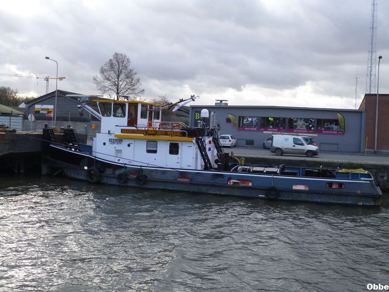 Geertruida van der Wees , 21,46 x 6,97 x 1,94 , 45 ton , Bouwjaar 1979 , Werf Deltawerf in Sliedrecht ( Nederland ) , 1 x 430 pk Mitsubishi & 1 x 470 pk Caterpillar , eigenaar van der Wees Watertransporten BV in Dordrecht , ENI 02315599
