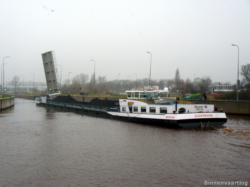 Mirage , 85,90 x 10,49 x 3,50 , 2094 ton , Bouwjaar 2001 , Werf Stocznia Malbo in Malczyce/Nowa Sol ( Polen ) en Joh. van Duijvendijk in Krimpen a/d IJssel ( Nederland ) , 1200 pk Cummins en 440 pk Cummins – van Wijk boegschroef , eigenaar Vof. Mirage (M. Heuvelman) in Ouderkerk a/d IJssel , ENI 02325357