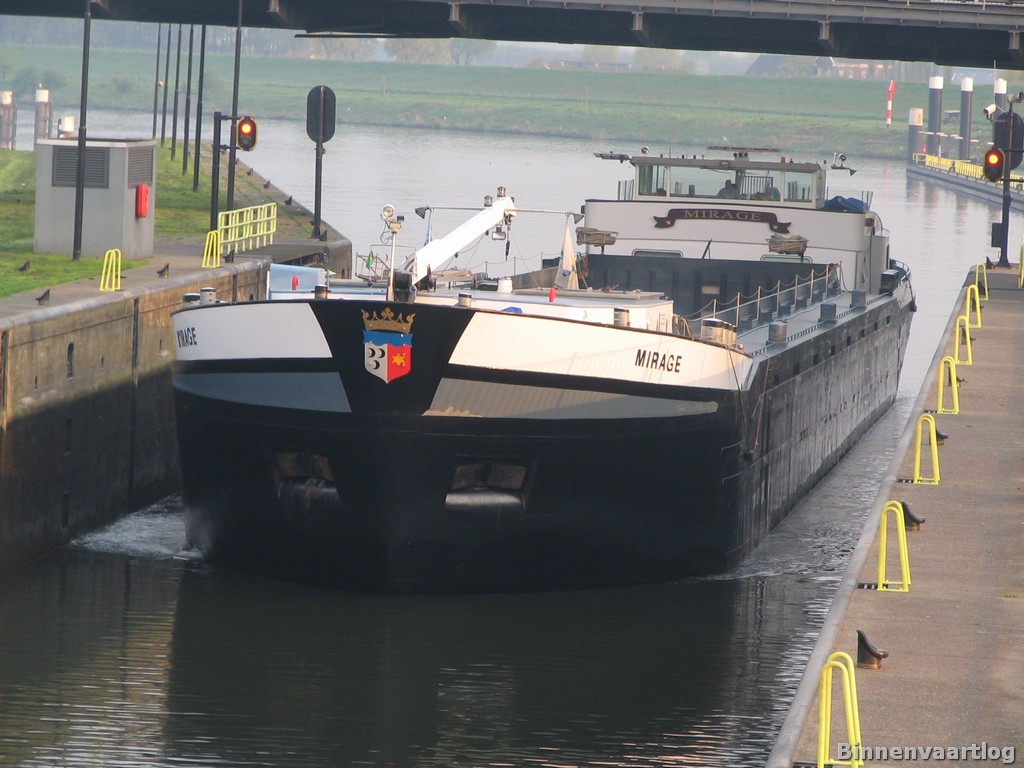Mirage , 85,90 x 10,49 x 3,50 , 2094 ton , Bouwjaar 2001 , Werf Stocznia Malbo in Malczyce/Nowa Sol ( Polen ) en Joh. van Duijvendijk in Krimpen a/d IJssel ( Nederland ) , 1200 pk Cummins en 440 pk Cummins – van Wijk boegschroef , eigenaar Vof. Mirage (M. Heuvelman) in Ouderkerk a/d IJssel , ENI 02325357