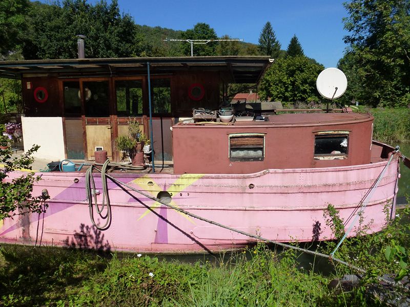 Voilà t-y pas que l'autre fois, en me promenant sur les bords du Doubs, à mont de l'écluse double n°54-55 de Rancenay (25), je tombe sur ce bateau-là :